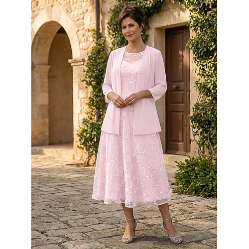 Due Pezzi Linea ad A Lunghezza alla caviglia Lunghezza Tè Abito da invitata a nozze Abito da cerimonia per signora Senza Maniche Manica 3/4 Girocollo Elegante Semplice Minimalista Formale Semi-Formale