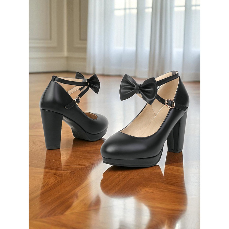 Women's Light Blue Platform Mary Jane Heels - Vintage 1950s Lolita Style Chunky Block Heels with Bow Ankle Strap, Perfect for Weddings, Cosplay and Elegant Evening Parties