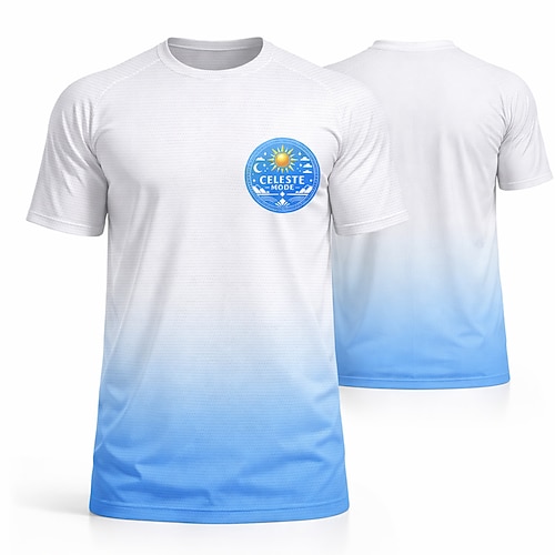 Herren Farbverlauf Argentinien Fußball-Sommer Global Match Pullover-Oberteile Laufshirt Sommer Farbblock Kurzarm UPF 50 Schnelltrocknend Leicht Atmungsaktiv Leger Laufen Joggen Fitness Blau