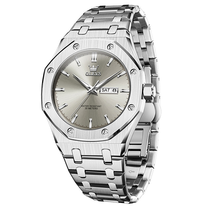OLEVS Men Quartz Watch Minimalist Fashion Casual Business Luminous Calendar Date Week Waterproof Steel Watch