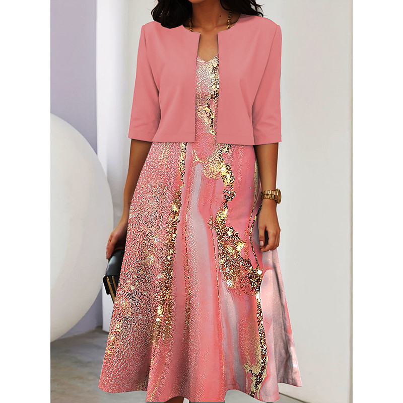 Women's Dress Set Summer Dress Casual Floral Print Midi Dress 3/4 Length Sleeve Crew Neck Outdoor Daily Pink Blue Green Summer Spring Regular Fit