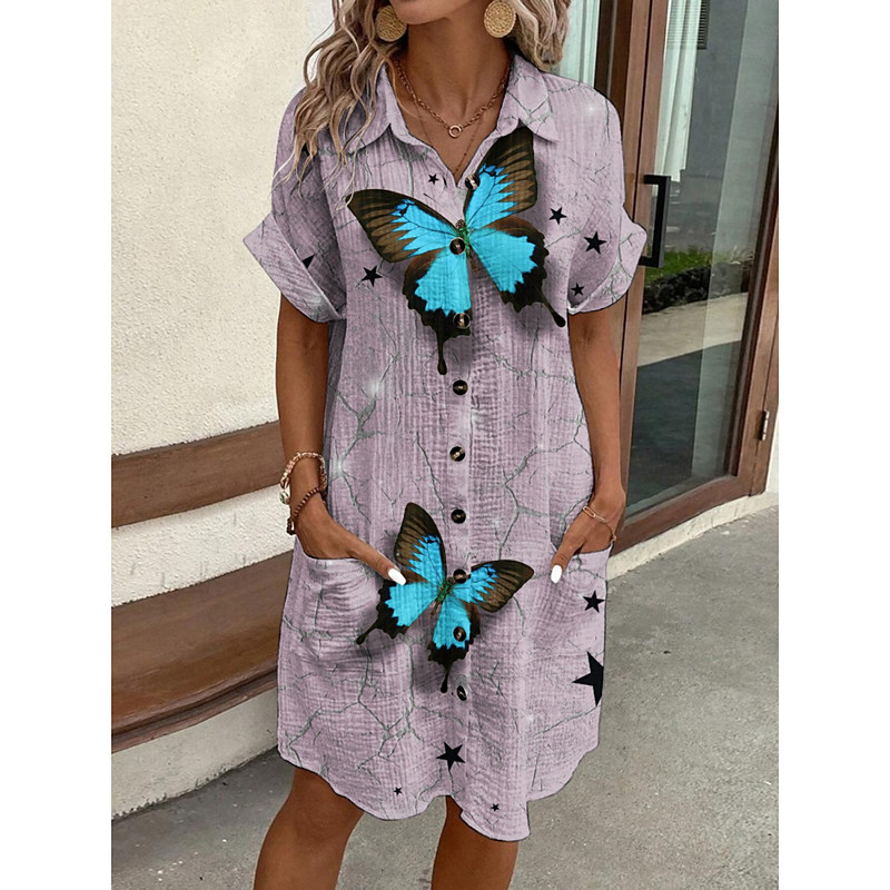 Women's Mini Dress Shirt Dress Casual Dress Print Dress Fashion Modern Daily Beach Weekend Regular Fit Butterfly Short Sleeve Shirt Collar Purple Summer Spring Fall Autumn