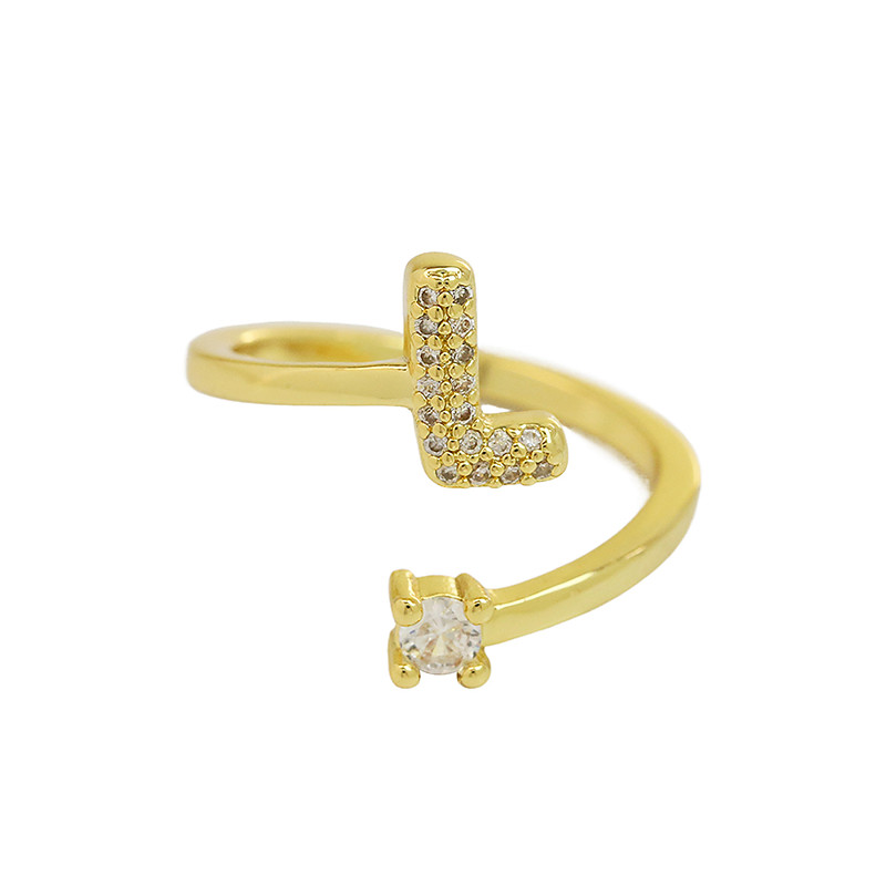 Gold Initial Ring for Women - Adjustable A-Z Alphabet Ring with Beads or Crystals - Personalized Name Jewelry for Everyday Wear, Graduation Season Gift or Special Occasion