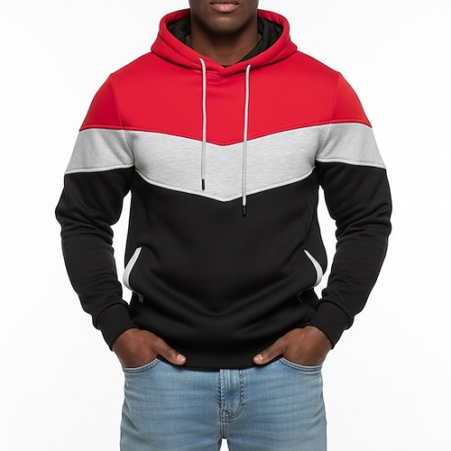 Per uomo Felpa con cappuccio Blu denim Nero Bianco Giallo Vino Con Cappuccio Blocco di colori Blocco di colore Tasca Frontale Casuale Quotidiano Sport Outdoor Streetwear Cool Abbigliamento Sportivo