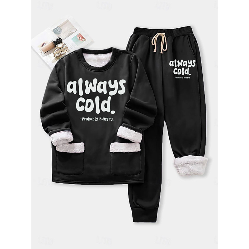 Women's Pajamas Set Fleece Lined 2 Pieces Sweatshirt Tracksuits Sweatsuits Top and Pant Letter Warm Comfort Soft Home Daily Bed Warm Breathable Crew Neck Long Sleeve Pullover Pant Elastic Waist Fall