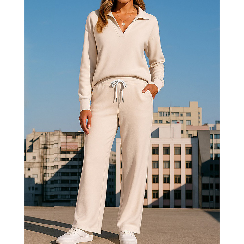 Women's Pullover Sweatsuit Sets 2 Piece Tracksuit Lounge Outfits with Pocket Solid Colored Clothing Suit Fall / Winter Light Coffee Black Spandex Gym Running Fitness Long Sleeve Sport Activewear