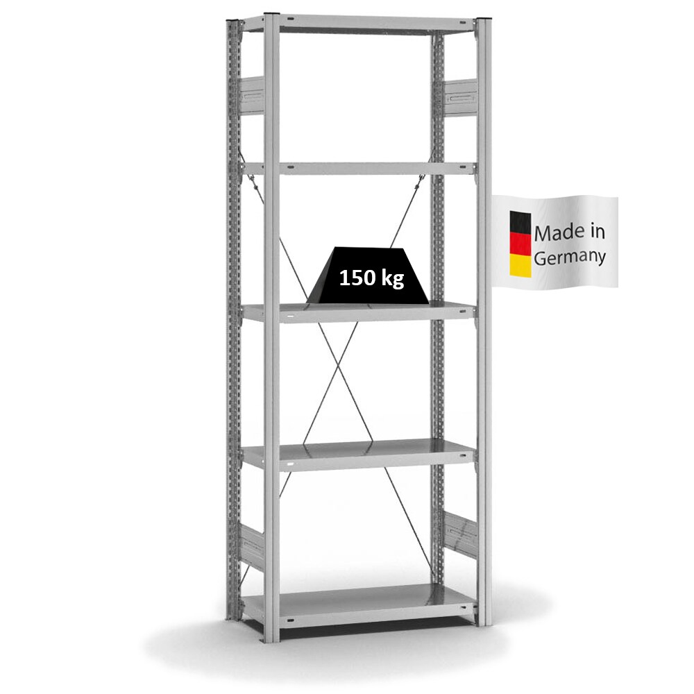 PROREGAL Fachbodenregal Stecksystem | Grundregal | HxBxT 200x75x30cm | 5 Ebenen | Fachlast 150 kg | Einseitig nutzbar | Verzinkt
