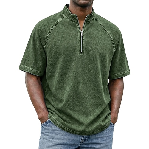 Per uomo Polo Camicia 100% cotone lavaggio acido Casuale Quotidiano Zip a un quarto Manica Corta Moda Essenziale Semplice Zip a un quarto Estate Primavera Vestibilità su misura Nero Rosa Verde scuro