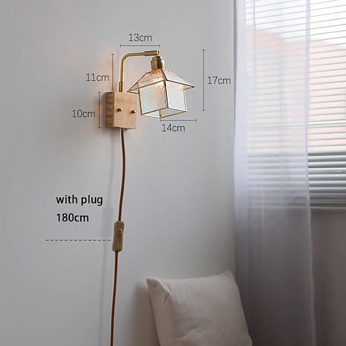 lampada da parete moderna applique con interruttore a tirante applique da comodino per interni e27 base quadrata con paralume in vetro lampada da parete camera da letto soggiorno apparecchio di
