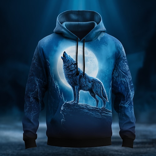 Per uomo Lupo Felpa con Cappuccio Felpa 3D Fantasia Manica Lunga Girocollo Regalo Club Abbigliamento casual alla moda Blu 1 Blu 3# Blu 2# Coulisse Autunno Inverno progettista S M L XL XXL XXXL