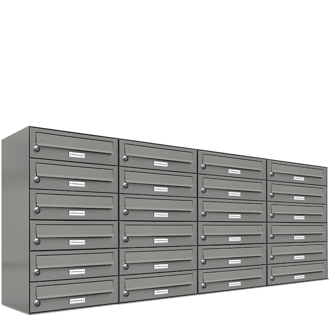 AL Briefkastensysteme 24 Fächer Premium Wand Briefkasten Anlage in RAL 9007 Aluminium Grau, Post A4, robust, wetterfest, Artikelnummer: 132P24EA4