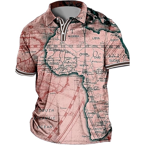 Per uomo Plus Size POLO Grande e alto Mappa Collo ripiegabile Stampa Manica corta Primavera estate Sportivo Di tendenza Streetwear Originale Esterno Strada Top