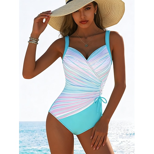 Per donna Costumi da bagno Intero Taglio alto Costume da bagno Elegante Vacanza Grafico A righe Scollo a V Senza Maniche Costumi da bagno