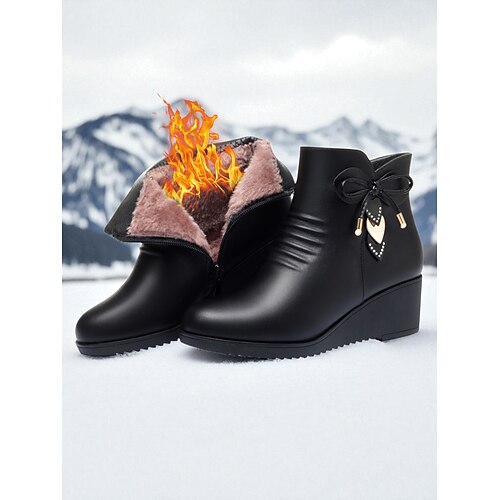 stivali invernali da donna con tacco spesso - stivaletti pieghevoli in pelliccia sintetica con cinturino con fibbia, scarpe alla moda calde e antiscivolo per abbigliamento casual e all'aperto