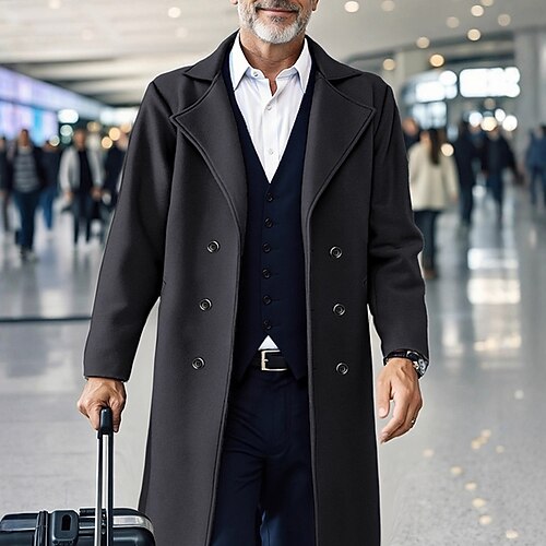 Per uomo Cappotto Trench Trench lungo Vacanza Quotidiano Autunno Inverno Poliestere Antivento Caldo Capispalla Abbigliamento Moda Classico Semplice Tasca Bavero Doppiopetto