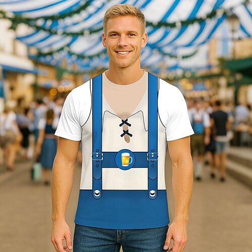 Bavarian Munich German T-shirt Sleeve T-shirt Lederhosen Print Graphic for Men's Adults' 3D Print for Carnival Oktoberfest Beer Party