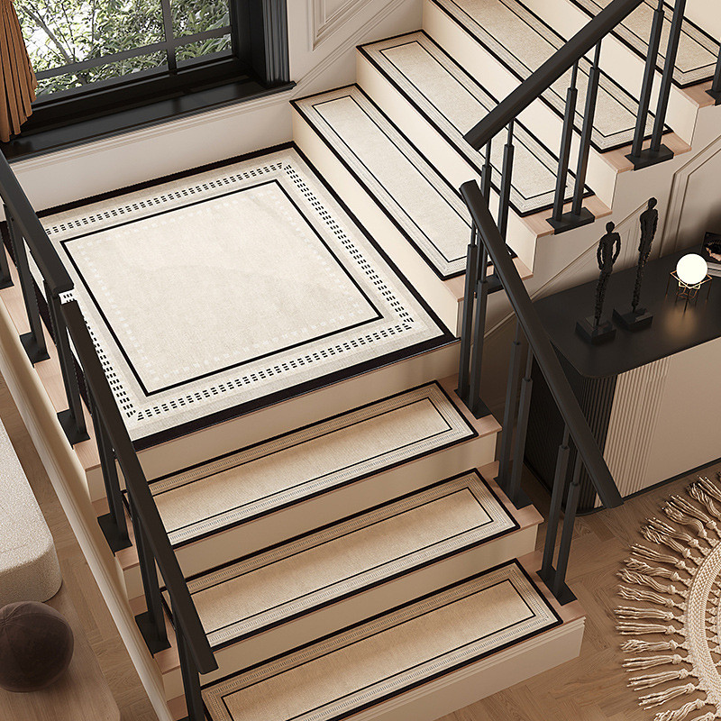 American Style Stair Tread Mats, Self-Adhesive No Glue, Cream-Colored Indoor Carpet for Steps, Non-Slip, Washable, Durable Stair Mats for Home, Easy to Clean and Maintain