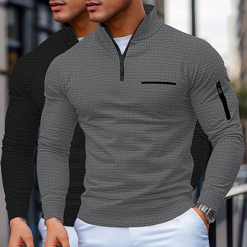 Per uomo Magliette Polo a Nido d'Ape Pullover Sport Outdoor Casuale Zip a un quarto Manica Lunga Moda Moderno Blocco di colori Tasca 2 Pezzi Primavera Autunno Interstagionale Tutte le stagioni