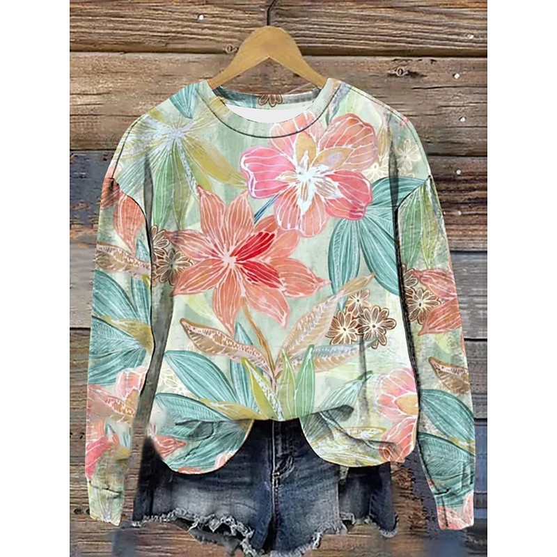 Women's Pullover Sweatshirt Floral Graphic Casual Long Sleeve Crew Neck Regular Tops Casual Street Dailywear Pink Purple Green Spring Winter