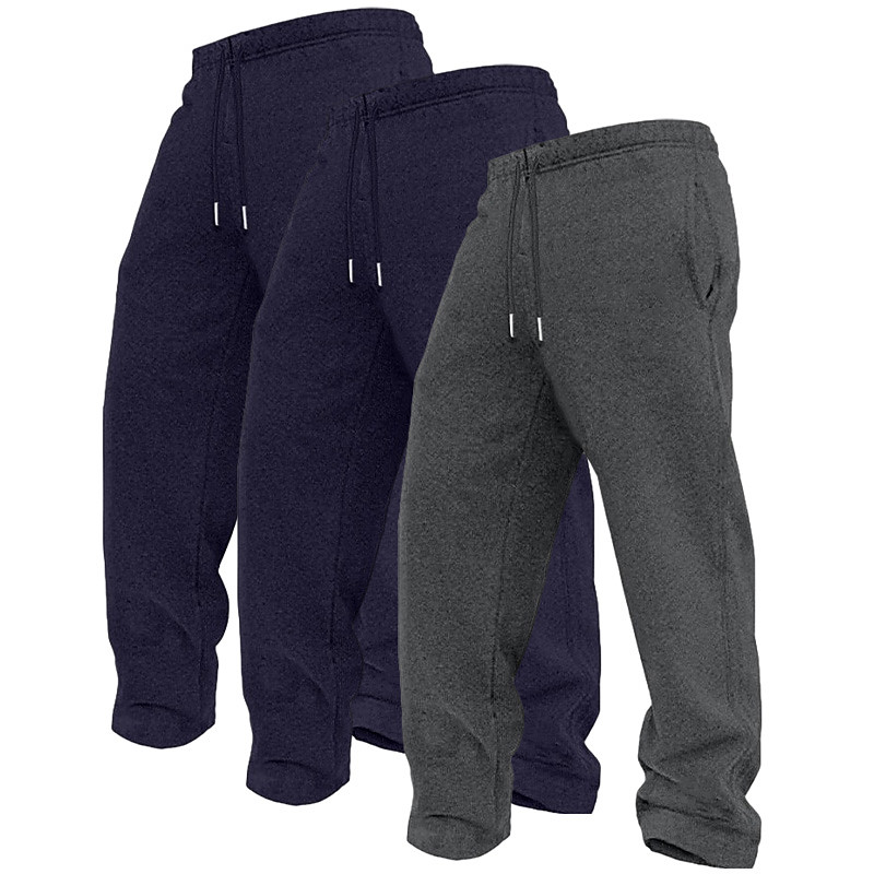 3Pcs Men's Straight Leg Sweatpants Fleece Trousers Casual Pants Drawstring Elastic Waist Multi-pack Plain Comfort Full Length Outdoor Travel Daily Basic Fashion