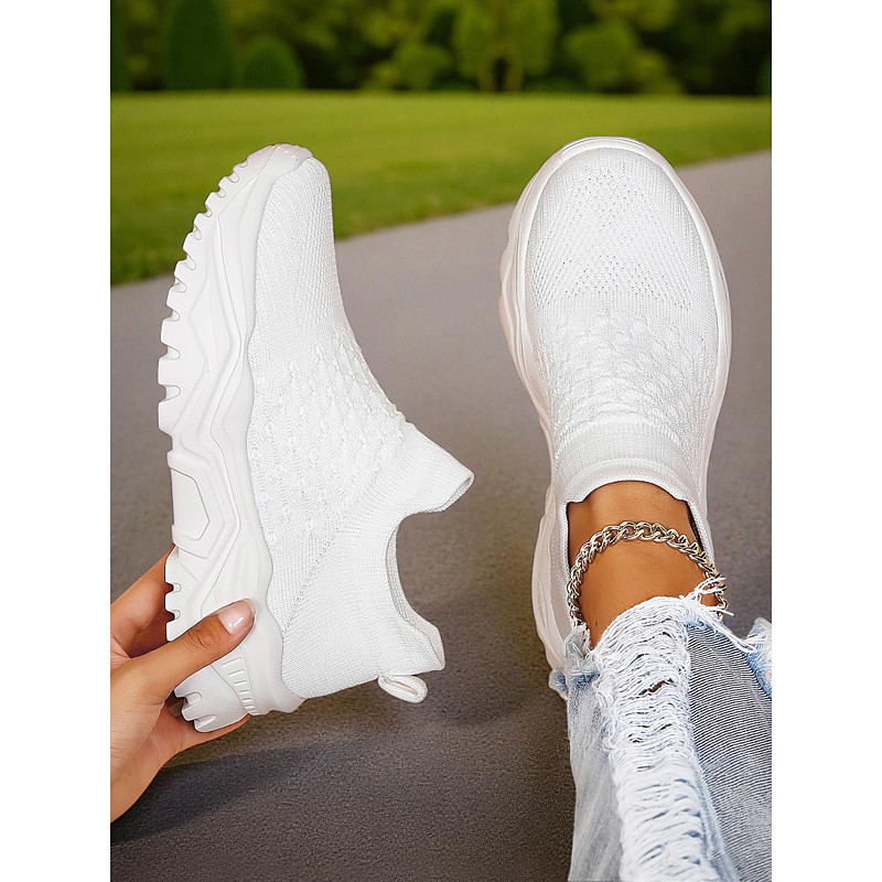 Women's Breathable Flyknit Wide-fit Slip-On Walking Shoes, Lightweight Mesh Comfort Shoes for Daily Wear, Travel, Shopping and Long Walks