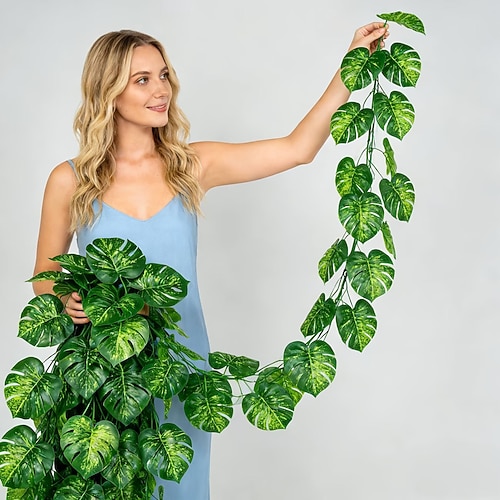 4 pezzi di rampicanti di foglie di monstera estive realistiche da 70,87 pollici, piante tropicali artificiali realistiche per decorazioni domestiche, decorazioni murali interne ed esterne, feste,