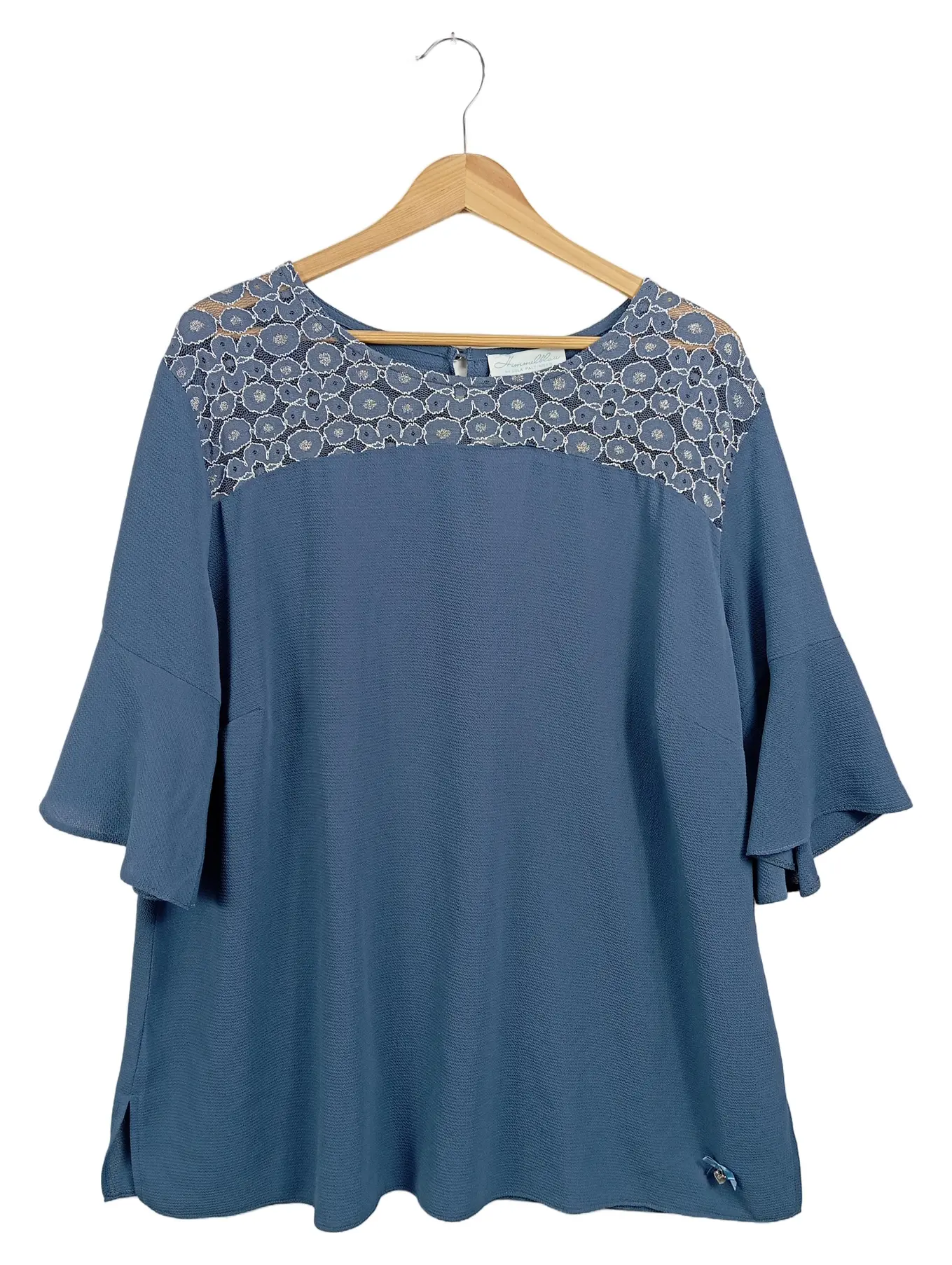 LOLA PALTINGER Damenbluse 50 Blau Spitze 3/4-Arm