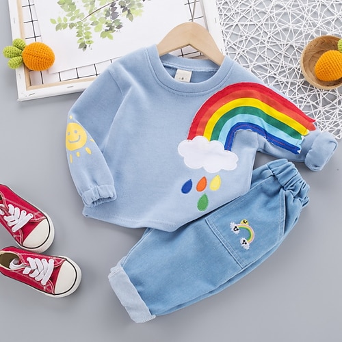 2 Stück Baby Jungen Kapuzenpulli Hose Aktiv Baumwolle Gelb Rote Beige Regenbogen Bedruckt Langarm Standard / Herbst