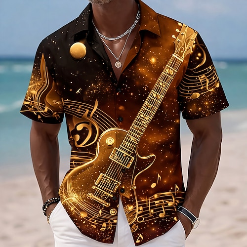 Per uomo Chitarra Strumento musicale Note Musicali Camicia Camicia con Bottoni Manica Corta Vintage Retrò Quotidiano Festival Musicale Estate Primavera Collo ripiegato Stampa 3D camicie con colletto