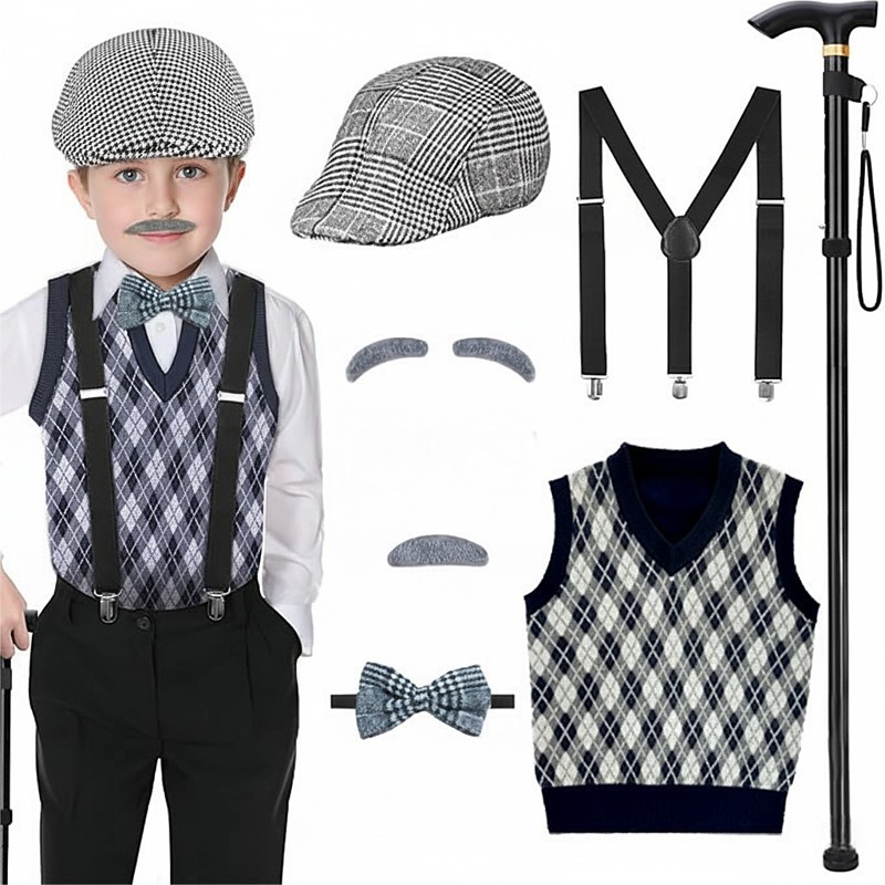 Carnival Costume 100th Day of School Costume 2026 Old Man Grandpa Carnival Fancy Costume Cosplay Kid's Boys' Carnival 100th Day of School Performance Educational Dress Up School Event Dress Up Easy