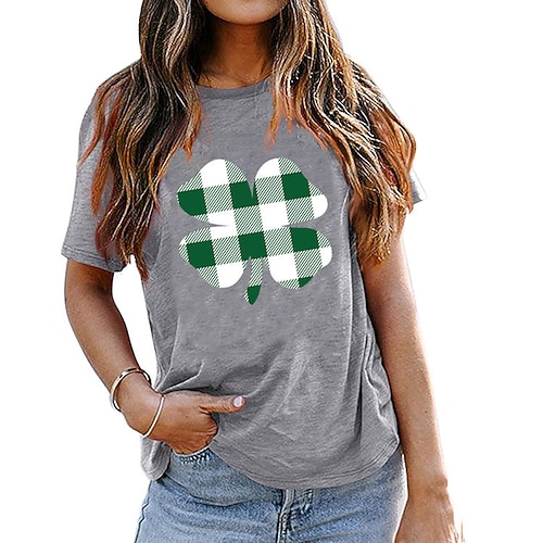 Giorno di San Patrizio Festa di San Patrizio Per donna Maglietta Trifoglio Moda Manica Corta Girocollo Top Regolari Casuale Giorno di San Patrizio Stampato Nero Bianco Giallo Rosa Verde Primavera