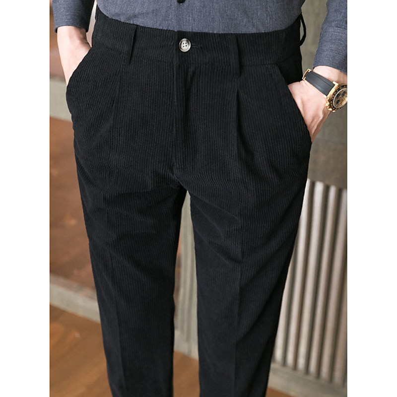 Men's Dress Pants Corduroy Pants Winter Pants Trousers Suit Pants Pocket Plain Comfort Breathable Outdoor Daily Going out Fashion Casual Black Khaki