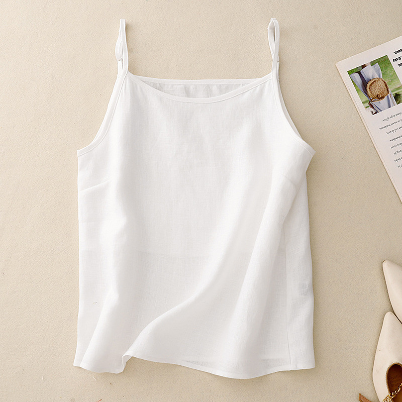 Women's Linen Shirt Blouse Cotton Linen Shirts Plain Casual Sleeveless Strap Regular Tops Daily Going out Black White Apricot Summer