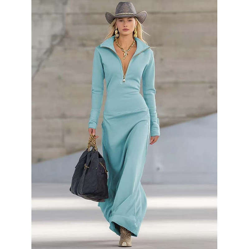 Women's Maxi Dress Athletic Dress Casual Boho Birthday Daily Sports Plain Long Sleeve Stand Collar Blue Black Pink Beige Spring Fall Winter