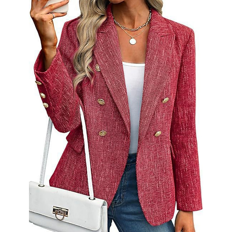 Women's Blazer Comfortable Breathable Pocket Fashion Casual Plaid Office Street Casual Daily Wear Double Breasted Regular Turndown Regular Fit Long Sleeve Outerwear Light Blue Black Pink Fall Winter