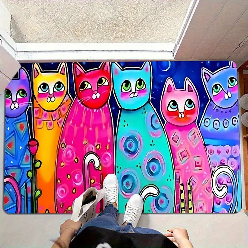 Doormat Cute Cartoon Cat Pet Pattern Entryway Rug Durable Dirt Resistant Easy Care Floor Mat for Front Door Hallway Indoor Home Decor