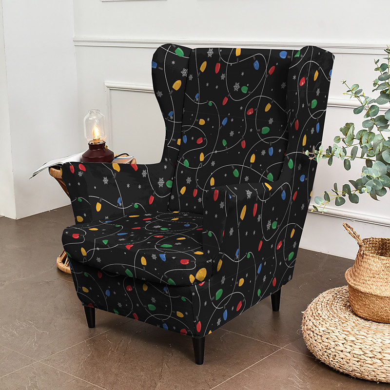 Wingback Chair Cover, Floral, Striped, or Geometric Printed Polyester Slipcover, Durable Non-Slip Chair Protector for Living Room