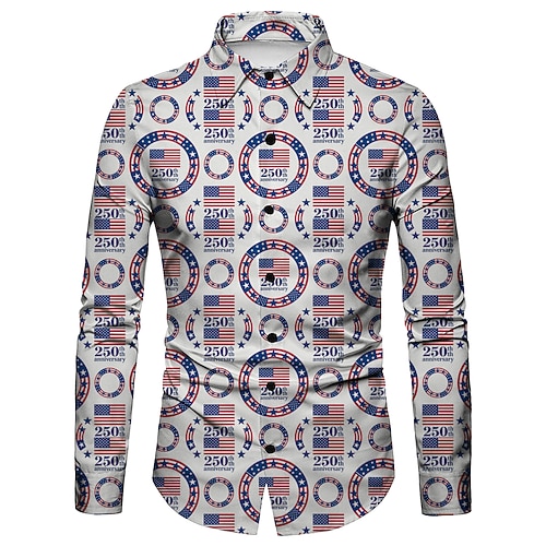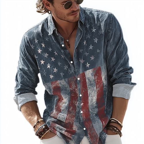 Herren Amerikanische US-Flagge Patriotisch Hemd Knopfhemd Langarm Vintage-Retro Ferien Alltagstauglich Frühling Herbst Umlegekragen 3D-Druck Hemden mit Kragen Blau Rote