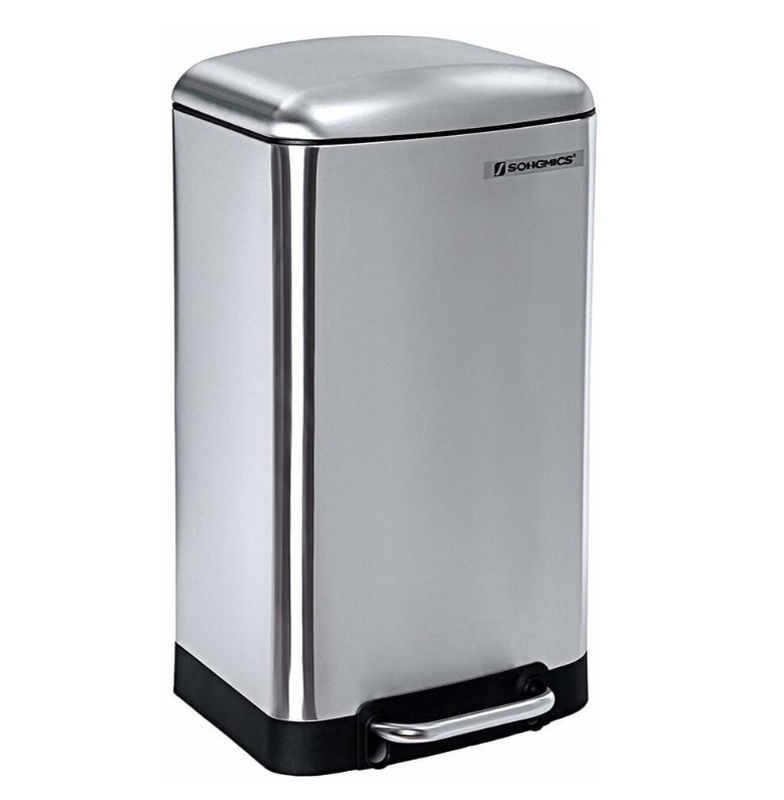 SONGMICS Müllbehälter, 30 Liter, Stahl-Fußpedal-Mülleimer, mit Innenbehälter und Deckel, Soft-Close, luftdicht, für die Küche, Silber