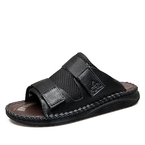 sandali da uomo per esterni con design traforato in similpelle e cinturino a strappo, suola resistente per escursioni, spiaggia e attività quotidiane