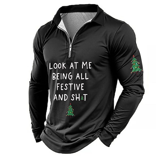 Natale Per uomo Albero di Natale Polo con zip Manica Lunga Magliette polo Colletto Vacanza Abbigliamento da sera Magliette di Capodanno Stampa 3D Primavera Autunno Inverno Blu Nero Rosso