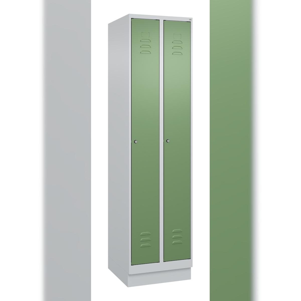 C+P Spind Classic PLUS, Sockel, 2 Abteile, HxBxT 195x50x50cm, Zylinderschloss, Hellgrau/Resedagrün von PROREGAL