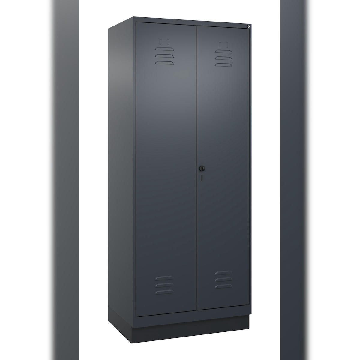 C+P Aufbewahrungs Doppel-Spind Classic PLUS, Sockel, 2 Abteile, 5 Fachböden, HxBxT 195x80x50cm, Sicherheitsdrehriegel, Anthrazit von PROREGAL