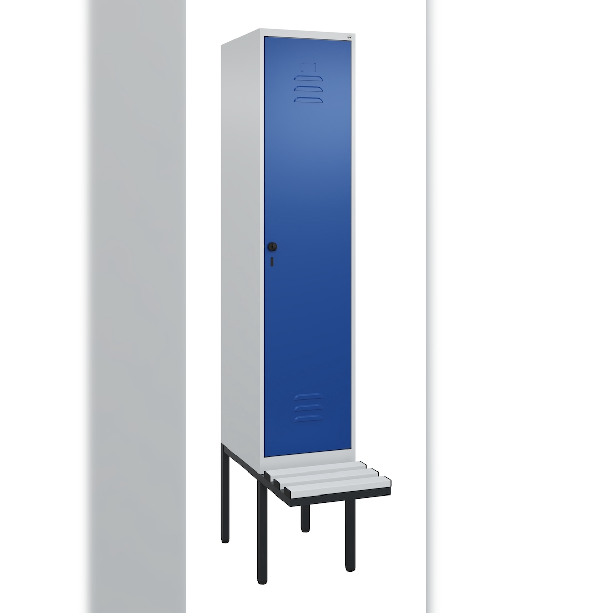 C+P Spind Classic PLUS, Kunststoff schwebende Sitzbank, 1 Abteil, HxBxT 212x40x82cm, Sicherheitsdrehriegel, Hellgrau/Enzianblau von PROREGAL