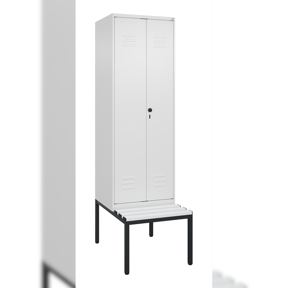 C+P Doppel-Spind Classic PLUS Kunststoff untergebaute Bank, 2 Abteile, Trennwand, HxBxT 212x60x82cm, Sicherheitsdrehriegel, Verkehrsweiß von PROREGAL