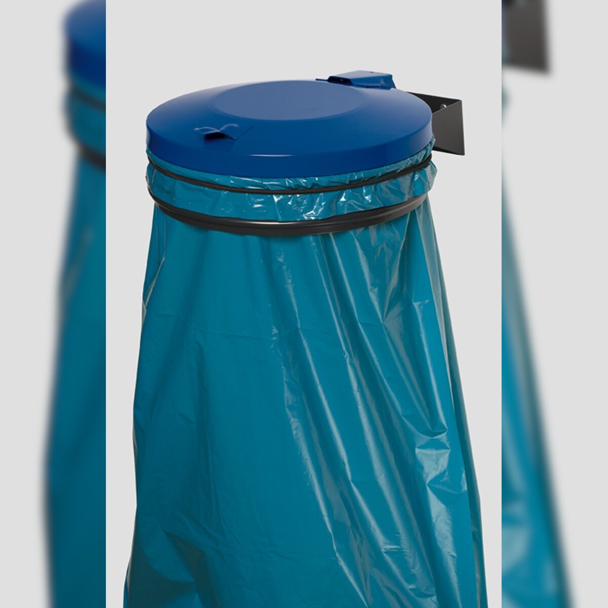 PROREGAL Wandhalterung mit großer Einwurföffnung | blauer Deckel | 39,5cm Durchmesser | Stahl | Anthrazit | Mülleimer Abfalleimer Müllkorb