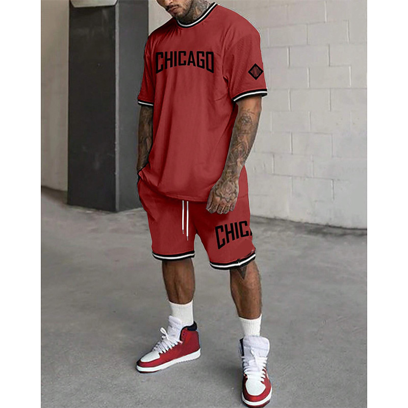 Men's Tracksuit Outfit Set Shorts Crew Neck Outdoor Daily Sports Pocket Drawstring 2 Piece Graphic Letter Black White Light Green Polyester Activewear Streetwear Casual Summer