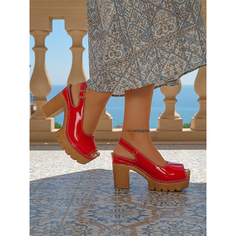 Women's Slingback Wedge Sandals with Chunky Heel – Glossy White Patent, Comfortable Peep Toe, Perfect for Beach Holidays, Summer Vacations and Resort Wear