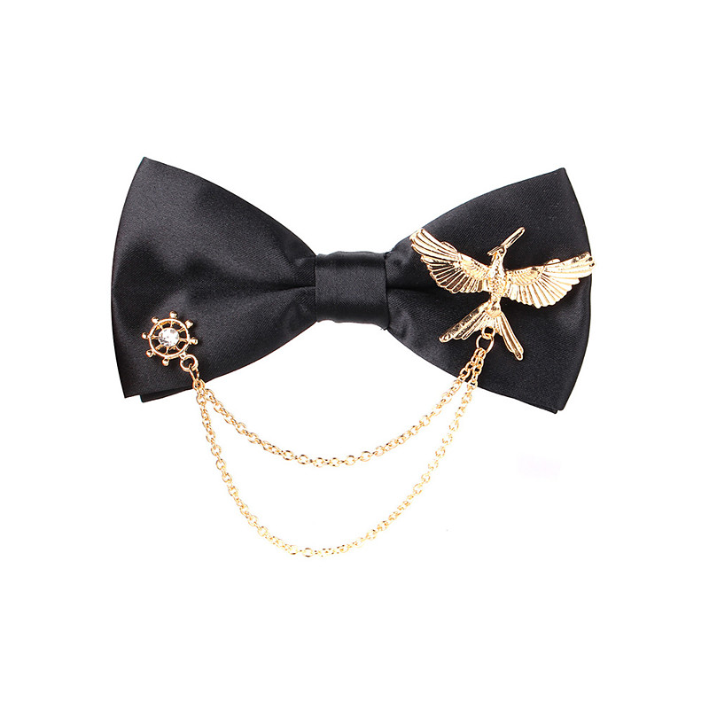 Men's Polyester Bow Tie – Multiple Designs, Gold or Silver Chains, Perfect for Weddings and Evening Parties