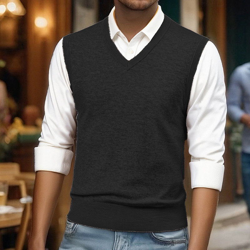 Men's Sweater Vest Dress Sweater Pullover Sweater Jumper Vest Knit Sweater Ribbed Knit Regular Tops Knitted Plain V Neck Fashion Casual Vacation Daily Wear Clothing Apparel Spring Fall Camel Black S